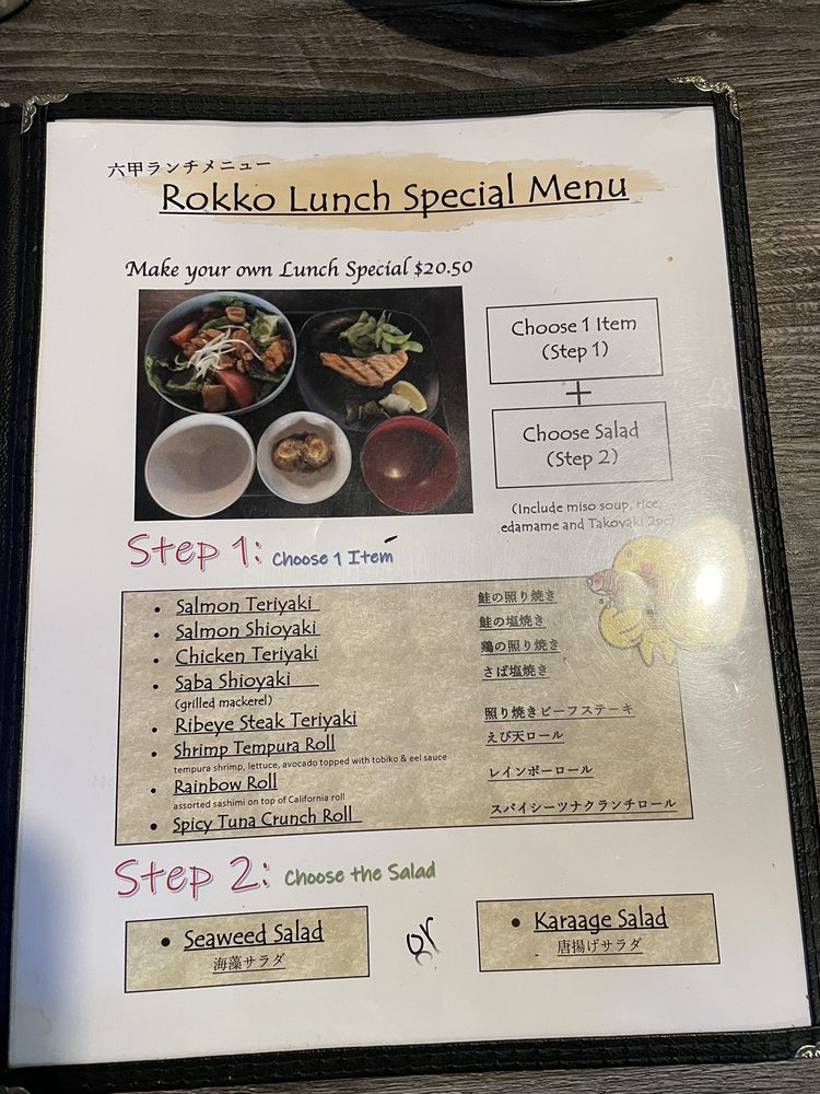 Chicken steak grilled with house special salt-based shio sauce, stewed beef over rice, takoyaki, edamame